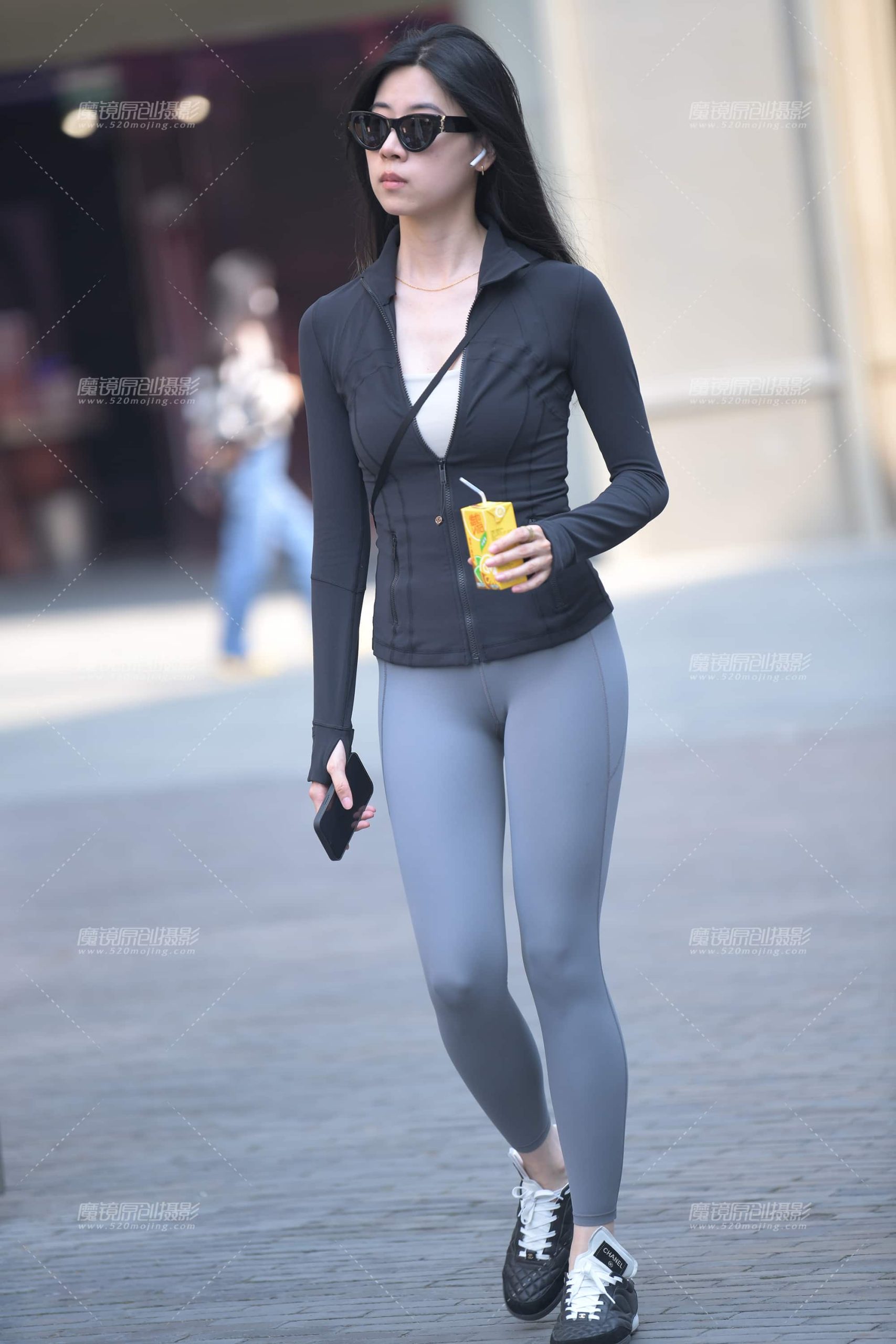 逛街中的灰色紧身裤